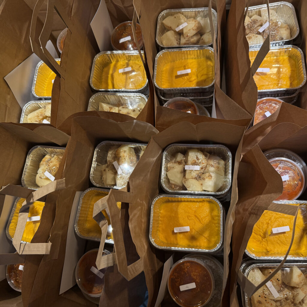 8 forskellige grønne tilbehørsretter. Retterne er ikke vegetariske, da vi nogle gange bruger fx kødfond til smagssætning. Vi kan desværre ikke tage hensyn til allergier og diæter. Rækker til 3 til 4 dage.